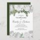 Floreal (rosas) branca, de estilo botânico/jardim, moderna e elegante, e folhas verdes e folhagem pintadas em convite de casamento branco. Perfeito para um casamento em qualquer época do ano. O texto, a fonte, o tamanho e a cor da fonte são completamente personalizáveis, de modo que este cartão pode ser projetado de acordo com as suas necessidades.