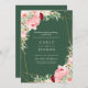Lindas flores de jardim de aquarela e folhagem adornadas em uma estrutura geométrica ouro, convite para casamento. O cartão apresenta arranjos florais em tons de rosa com verde esmagador. Modelo de design de tipografia elegante. Os fundos mostrados no verde-caçador silencioso podem ser personalizados.