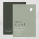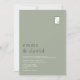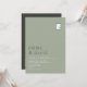 Simples, moderno, minimalista, contemporâneo, convite de casamento verde sábio com monograma no canto superior direito e nomes de cheio no verso.