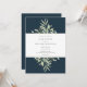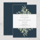 Com delicadas folhas de verde aquarela num fundo azul marinho profundo. Este convite de casamento botânico elegante pode ser personalizado com as informações do seu dia especial. Desenhado por Thisisnotme©