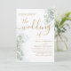 Este é um convite de casamento moderno e elegante para o 'casamento de' caligrafia em ouro, com a adição de eucalipto verde sábio e coordenação de elementos botânicos. Fácil personalizar o texto para criar algo realmente exclusivo.