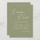 O convite para o casamento do Sage green Earth apresenta um estilo simples e elegante de caligrafia de script e texto simples e elegante.A paleta de tom de terra natural o torna excelente para casamentos de primavera de verão, casamentos de vassouras, casamentos outono e casamentos rústicos.Se você está procurando um simples convite para o casamento, esta é uma escolha perfeita para o seu grande dia