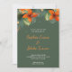 Apresentando nosso belo convite de casamento tropical em verde escuro! Este convite é perfeito para casais que querem incorporar uma vibração tropical ao seu casamento. O convite apresenta um arranjo floral verde e cor de laranja impressionante no topo do cartão, rodeado de verde-luxuoso. O texto é elegantemente impresso em caracteres brancos simples, exceto para os nomes dos casais que são realçados em uma bela fonte de script laranja, dando ao convite um pop de cor. Este convite de casamento é perfeito para casais que planejam um casamento de destino ou que querem trazer um sentimento tropical para a celebração do casamento. O fundo verde escuro acrescenta um toque de sofisticação ao design, fazer perfeito para casais que querem um convite de casamento único e na moda. O design é versátil, fazer excelente escolha para casais com laranja ou verde como sua principal cor de casamento. O arranjo floral é bonito e vibrante, acrescentando um toque de elegância e uma dica do paraíso tropical à sua celebração de casamento. Nosso convite para o casamento tropical em verde escuro é uma bela escolha para casais que querem dar o tom para o seu casamento temático tropical. Com sua impressionante design floral e bela tipografia, este convite certamente impressiona seus convidados e os entusiasma pelo seu dia especial.