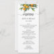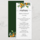Belos cartões de cardápio para elogiar suas configurações de mesa no seu casamento ou na próxima festa de janto. Elegante e romântico, este cartão de menu do janto de casamento design apresenta uma ilustração botânica vibrante em tons de folhagem verde, laranja tangerina brilhante e flores brancas macios para esta paleta de cores fresca e harmoniosa Adicione seus nomes e jante ou faça o almoço usando o modelo. Coordenado para a coleção de Tangerina. A placa retrorreflectora está em cor laranja.