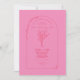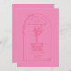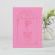 Ilustração do buquê com borda de arco botânico de arte de linha. O fundo é rosa. Design e texto são vermelhos.