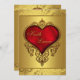 Rich gold damask com o coração vermelho elegante, vermelho e convite para casamento dourado.