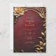Descubra a beleza do seu amor com este convite encantado e Dourado de casamento. Apresentando um fundo vermelho texturizado adornado com decor metálico ouro em um efeito 3D, esse convite irradia sofisticação e charme. Personalize para capturar a essência do seu dia especial.