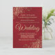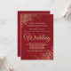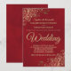 Este convite de casamento simples, mas elegante, mostra uma letra dourada num fundo vermelho marcado. O design é subestimado, mas os cantos apresentam um filigre floral de folha de ouro ornamentado com cachos e fraldas. O texto é formal e tradicional, mas a design de chic torna esse convite apropriado para qualquer casamento.