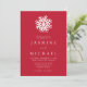 Celebre seu dia especial com nosso convite de casamento vermelho ao Simple Snowflake. Apresentando um floco de neve branco e ousado contra um fundo vermelho impressionante, este design elegante permite que casais personalizem com seus nomes e detalhes de casamento em letras brancas de serifa e sotaques de caligrafia. Ideal para o inverno moderno, feriados e casamentos de Natal, este convite dá o tom perfeito para uma celebração festiva e memorável.