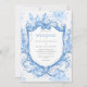 Moldura azul-aquarela com lindas fontes e roteiros feitos em cores de coordenação de convite para casamento. Um convite perfeito para qualquer temporada. Um convite bonito e elegante. Um belo sentimento antigo.