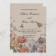 Este belo convite inspirado na vintagem é ilustrado com uma cena pacífica de jardim, cheia de borboletas coloridas. Este convite pode ser adquirido separadamente ou como parte de um pacote de cartões de casamento.
