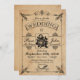 Convite de casamento ao estilo Vintage, com um quadro floral romântico, rosas elegantes e uma carruagem sobre um fundo de papel antigo em apuros. Personalizável para a celebração de casamento com temas clássicos ou de jardim.