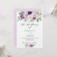 Um fundo branco na frente. Decorado com flores violetas e púrpuras de cor aquosa e verde. Personalize e adicione seus nomes e detalhes da festa. Fundo: fundo rosa.