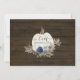 "Marinho Blue Floral Pumpkin Rustic Virtual Wedding Invitation." Quando é hora de seguir em frente juntando suas vidas e você decidiu fazê-lo virtualmente, aqui está um convite que pode ajudar seus familiares a navegar maravilhosamente no processo. Outono, folhagem de outono em tons de terra mudada são combinados com flores azuis marinhos de Chrysanthemum e flores silvestres azuis empoeiradas com tom de sépia, folhagem seca de samambaia e folhas verdes de outono secas. O fundo de madeira de celeiro escuro e rico dá uma sensação rústica a este convite de casamento. Pintada em aquarela pela artista internacionalmente conhecida e licenciada Audrey Jeanne Roberts. Direitos autorais.