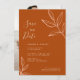 Convide seus amigos e entes queridos para uma celebração de casamento virtual com este convite de salvar a data elegante e sofisticado, apresentando uma paleta de cores terracota terrosa com um design de folhas esboçadas. Personalize-o com os detalhes do seu casamento e foto na parte de trás.