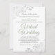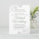 Só porque você foi forçado a mudar seu casamento para uma cerimônia virtual, não significa que você não pode enviar belos convites. Este elegante convite apresenta rico verde-sábio e cinza escrita em fundo branco com filigre floral de folha fina prateada ou caracóis e espirais nos cantos. Uma maneira perfeita de convidar seus amigos e família para compartilhar em seu dia especial, mesmo que eles não possam estar lá pessoalmente.