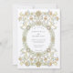 Este maravilhoso conjunto de convites para o casamento inspirado no Vitoriano/Nouverau apresenta um belamente intrincado design floral em tons de creme macio, pincel, azul pálido e ouro macio. A frente mostra uma delicada e desenhada borda com flores florescentes e folhas girando, moldando seus detalhes de casamento em uma fonte elegante. O dorso complementa o design com um padrão floral igualmente detalhado, criando um olhar coeso e luxuoso. Perfeito para casais que buscam um tema romântico e inspirado em vintage com um toque refinado de elegância Art Deco.
