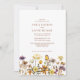 Celebre o seu amor com este convite de casamento elegante e minimalista, com flores silvestres pintadas manualmente em tons ricos de outono de cor roxa, laranja queimada, amarelo e verde. Colocada sobre o fundo branco clássico, a escrita moderna do terracota adiciona um toque contemporâneo. Perfeito para casamentos de jardim de vassoura, cerimônias de chic rústicas, ou celebrações de outono, esta design captura a essência da beleza da natureza.