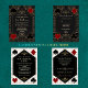 Vintage card design Great and Casino themed. It features Roaring 1920's old Hollywood Art Deco style shape, royal faux gold freer-de-lis as dividers, vintage fonts, on a gold black Art Deco pattern, as well playing cards suits with a golden edges. Use Personalize tool to add your information. For more, visit please, my Casino Poker Wedding Collection.