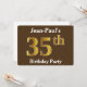 Este design de convite apresenta o número normal "35º" com uma aparência falsa em ouro. Ele também apresenta um nome personalizado e um fundo castanho. Os detalhes do evento no verso podem ser personalizados. Poderia ser usado para convidar pessoas para a trinta e cinco festas de aniversário de alguém. [~Z0000015]