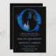 Convite de casamento com tema de fantasia, conto de fadas e castelo medieval em azul jeans índigo branco energeticamente aprimorado, perfeito para o seu casamento de conto de fadas dos sonhos.