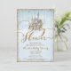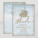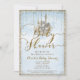 Convites de Churrasco de Bebê Azul Castelo de Contos de Fadas com Glitter Dourado