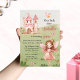 Convite para Castelo de Fadas Caprichoso: Faça os sonhos de aniversário do seu filho se tornarem realidade com nosso convite para castelo de fadas caprichoso! Este design encantador apresenta um adorável castelo rosa, uma fada rosa e borboletas, contra uma bela paisagem. Personalize com facilidade para incluir o nome da criança, idade e detalhes da festa, e aproveite o espaço adicional no verso para uma lista de desejos ou texto extra. Ideal para qualquer idade, este convite promete uma celebração mágica. Personalize e encomende agora para dar vida ao conto de fadas!