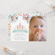 Este belo convite de 1rua/primeiro aniversário apresenta um castelo com um par de unicórnios e flores. O verso apresenta um fundo branco com padrões florais. Personalize para suas necessidades. Você pode encontrar mais produtos correspondentes na minha loja.