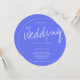 Um convite circular de casamento com um design casual, porém moderno, de tipografia. Este convite a cores sólidas azuis acentua o grande evento com a palavra Casamento em uma fonte grande, estilo de escrita manual. O resto do convite é em tipografia limpa, aberta, que dá ao design uma estrutura forte. Este convite reflete a natureza relaxada, mas bem organizada, do seu casamento. Pronto para verificar convites fora da sua lista? Basta adicionar suas informações, adicionar este convite ao seu carrinho e fazer um casamento de excelente. Design de Feriado de Natal do Convite para Tipografia Azul Casual | ©Melissa Patton - Designer