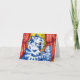 Cartão com o gato de pintura animal de Louis Wain e seus gatinhos (1860-1939). Um gato-mãe azul antropomorfo segura um de seus gatinhos azuis. Dois gatinhos adicionais dormem em uma cesta. Um presente maravilhoso para amantes de gatos e arte inglesa.
