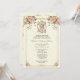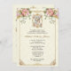 Featuring a beautiful Catholic custom designed Baptism Christening Floral invitation with the Blessed Mother holding Jesus in her arms inlaid in a gold frame with floral spray and gold border. All text and fonts may be modified.