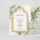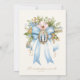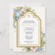 Apresentando um belo e personalizado convite de Natal católico Batismo com a Mãe Abençoada, Nossa Senhora de Graça, sobreposta a um arco azul com um spray floral. Todos os textos e fontes podem ser modificados.