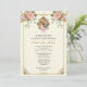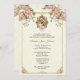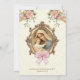Apresentando um belo costume católico desenhado por Baptismo Christening Convite Floral com a Mãe Abençoada segurando Jesus em seus braços enfeitado em uma armação de ouro com arco rosa, spray floral e borda de ouro. Todos os textos e fontes podem ser modificados.