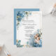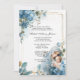 Apresentando um belo convite de Natal Batismo desenhado por costume com flores azuis e a Mãe Abençoada segurando Jesus em seus braços. Todos os textos e fontes podem ser modificados.