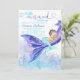 Convites de baby shower de sereia com adorável bebê sereia morena em uma bela cauda de sereia roxa e lindo fundo submarino. Este convite de baby shower de sereia é facilmente personalizado com seus detalhes.