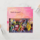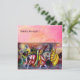 Desenho floral elegante e caprichoso com uma planta de borboleta mágica, espirais florais, fadas, cavalos, noturno musical em cores vibrantes azul-esverdeado, vermelho, amarelo e branco. Pintura acrílica em tela, pintura de mídia mista com folha de ouro e prata. Este design artístico e sofisticado é facilmente personalizável com seu texto e iniciais como cerimônia de casamento, anúncio nupcial, concerto, programas de aniversário, cartões de lugar, agradecimento, festas de aniversário de 16 anos, chás de noivado românticos, feriados, escritório, reuniões de família, celebrações de Ano Novo, aniversários, encontros, recital ou praticamente qualquer evento que você desejar!