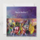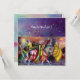 Desenho floral elegante e caprichoso com uma planta de borboleta mágica, espirais florais, fadas, cavalos, noturno musical em cores vibrantes azul-verde, vermelho, amarelo e branco. Pintura acrílica em tela, pintura de mídia mista com folha de ouro e prata. Este design artístico e sofisticado é facilmente personalizável com seu texto e iniciais como cerimônia de casamento, anúncio de núpcias, concerto, programas de aniversário, cartões de lugar, agradecimento, festas de aniversário de 16 anos, chás de noivado românticos, feriados, escritório, reuniões de família, celebrações de Ano Novo, aniversários, encontros, recital ou praticamente qualquer evento que você desejar!