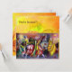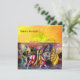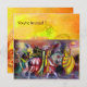 Desenho floral caprichoso e elegante com uma planta de borboleta mágica, espirais florais, fadas, cavalos, noturno musical em cores vibrantes azul-esverdeado, vermelho, amarelo e branco. Pintura acrílica em tela, pintura de mídia mista com folha de ouro e prata. Este design artístico e sofisticado é facilmente personalizável com seu texto e iniciais como cerimônia de casamento, anúncio nupcial, concerto, programas de aniversário, cartões de lugar, agradecimento, festas de aniversário de 16 anos, chás de noivado românticos, feriados, escritório, reuniões de família, celebrações de Ano Novo, aniversários, encontros, recitais ou praticamente qualquer evento que você desejar!