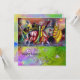 Desenho floral caprichoso e elegante com uma planta de borboleta mágica, espirais florais, fadas, cavalos, noturno musical em cores vibrantes azul-verde, vermelho, amarelo e branco. Pintura acrílica sobre tela, pintura de mídia mista com folha de ouro e prata. Este design artístico e sofisticado é facilmente personalizável com seu texto e iniciais como cerimônia de casamento, anúncio de núpcias, concerto, programas de aniversário, cartões de lugar, agradecimentos, festas de aniversário de 16 anos, chás de noivado românticos, feriados, escritório, reuniões de família, celebrações de Ano Novo, aniversários, encontros, recital ou praticamente qualquer evento que você desejar!