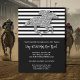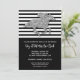 Um dia nas corridas de cavalos, um falso cavalo brilhante prateado em listras brancas e pretas no topo e na parte inferior, com os detalhes do evento em letra chic. Ventiladores, pratos, guardanapos, rótulos de garrafas de vinho, fãs de mão e mais disponíveis na nossa coleção.