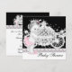 Convites de chá de bebê princesa menina com carruagem e cavalo branco. Este convite de chá de bebê elegante em rosa e preto funciona bem para um evento com tema de princesa. Para personalizar para o seu evento, adicione os detalhes do evento, estilo de fonte, tamanho e cor da fonte e a redação. Por favor, note que todos os desenhos de convite que você encontrará na Zazzle são gráficos impressos em papel simples sem relevos ou adição de joias, laços, partes ou peças.