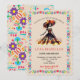 Convide seus amigos e celebre juntos o Dia de los Muertos, Dia dos Mortos, com este convite moderno, apresentando uma elegante caveira de açúcar em um lindo e elegante vestido de festa, e flores coloridas. Personalize facilmente o convite com os detalhes da sua celebração do Día de los Muertos.