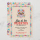 Convide seus amigos e celebre juntos o Dia de los Muertos, Dia dos Mortos, com este convite moderno, apresentando uma elegante caveira de açúcar e flores coloridas. Personalize facilmente o convite com os detalhes da sua celebração do Día de los Muertos.