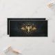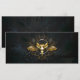 Composição de preto e ouro desenhada artificialmente, simétrica, asas de pássaros, ouro, crânio de pássaros decorado com padrão dourado sobre fundo escuro e texturizado.Estilo gótico