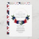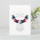 Convite de foto personalizável para Celebração da Vida com buquê de flores vermelhas, brancas e azuis para os detalhes do seu evento.