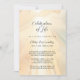 Convite de Celebração da Vida inspirado no Céu com ilustração em aquarela de luz solar irrompendo através das nuvens.