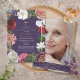 Uma elegante e personalizada celebração cristã de recordação da vida, um convite fúnebre com lindas flores florais e uma estrutura de ouro em fundo roxo. Projetado por Thisnotme©