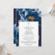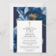 Este convite de celebração cristã da vida e do luto em azul marinho e dourado com flores pode ser personalizado com suas informações em tipografia clássica. Criado por Thisisnotme©
