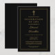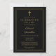 Um convite de funeral moderno e elegante com borda preta e dourada para Celebração Cristã de Vida, projetado por Thisisnotme©