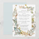 A celebração elegante de um convite à vida apresenta um elegante quadro de folhagem botânica azul empoeirada, flores brancas e borboletas. O nome da pessoa morta está escrito em um texto tradicional. Todo o texto pode ser facilmente editado para criar uma lembrança pessoal.